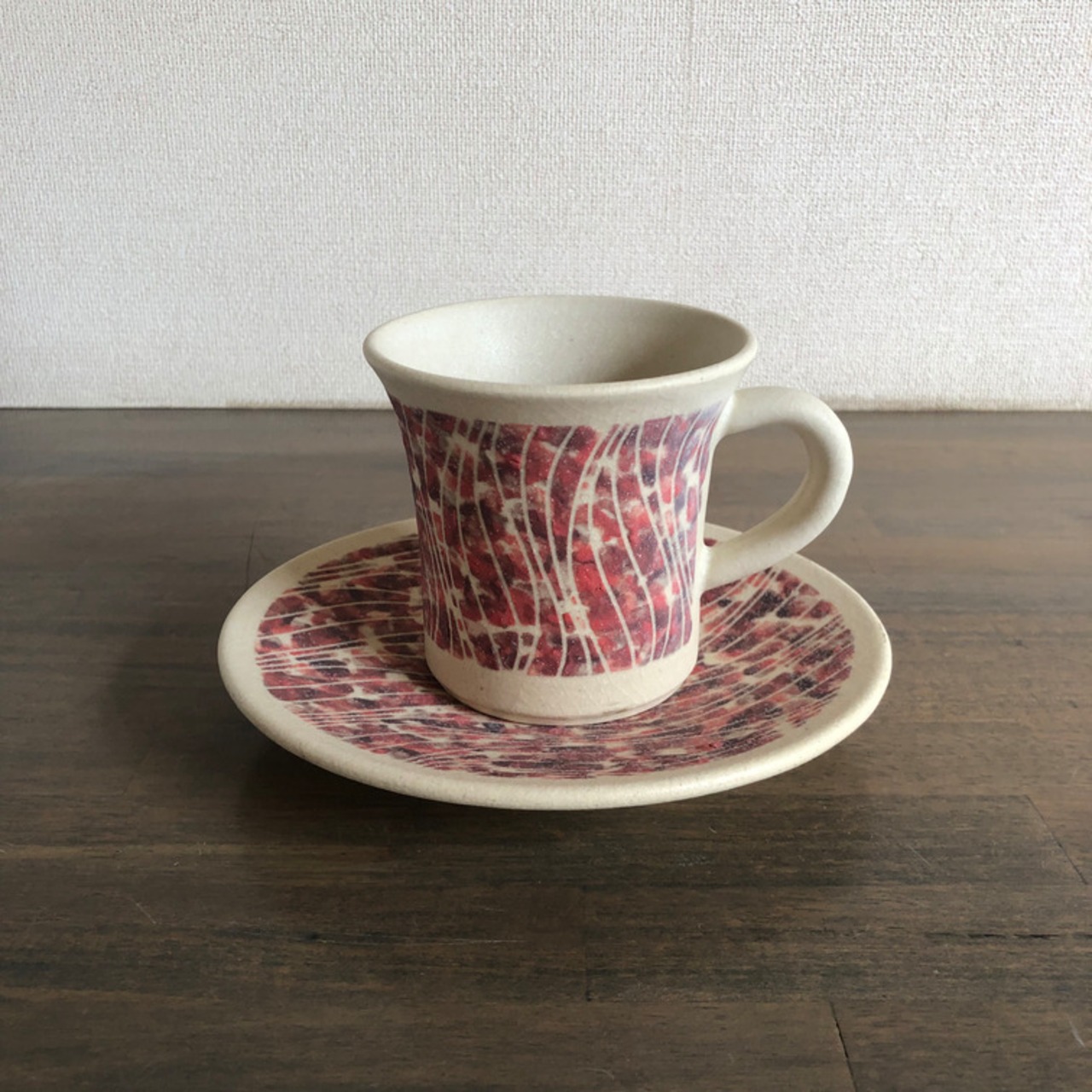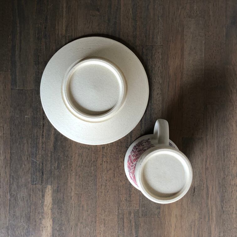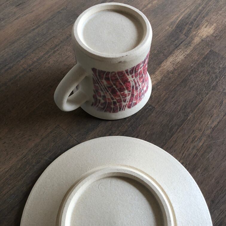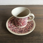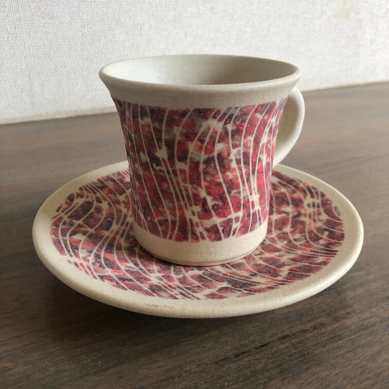 (説 明)ソーサーとのセットで一部に赤褐色の顔料を施した一品。