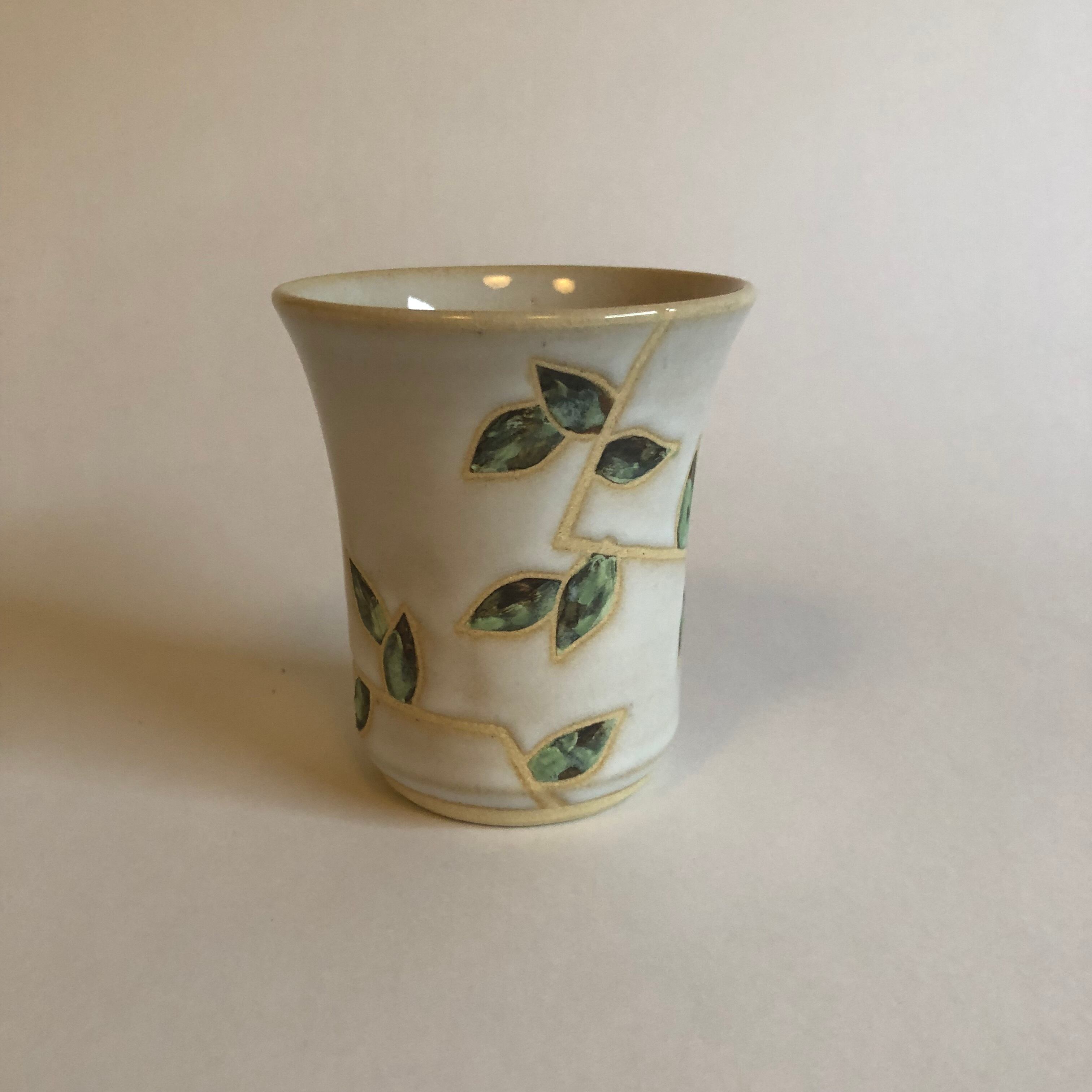 (技 法)マスキング技法によって彩られた「葉紋」シリーズの一つ ろくろ成形によって手に馴染む自然な風合いの器形
