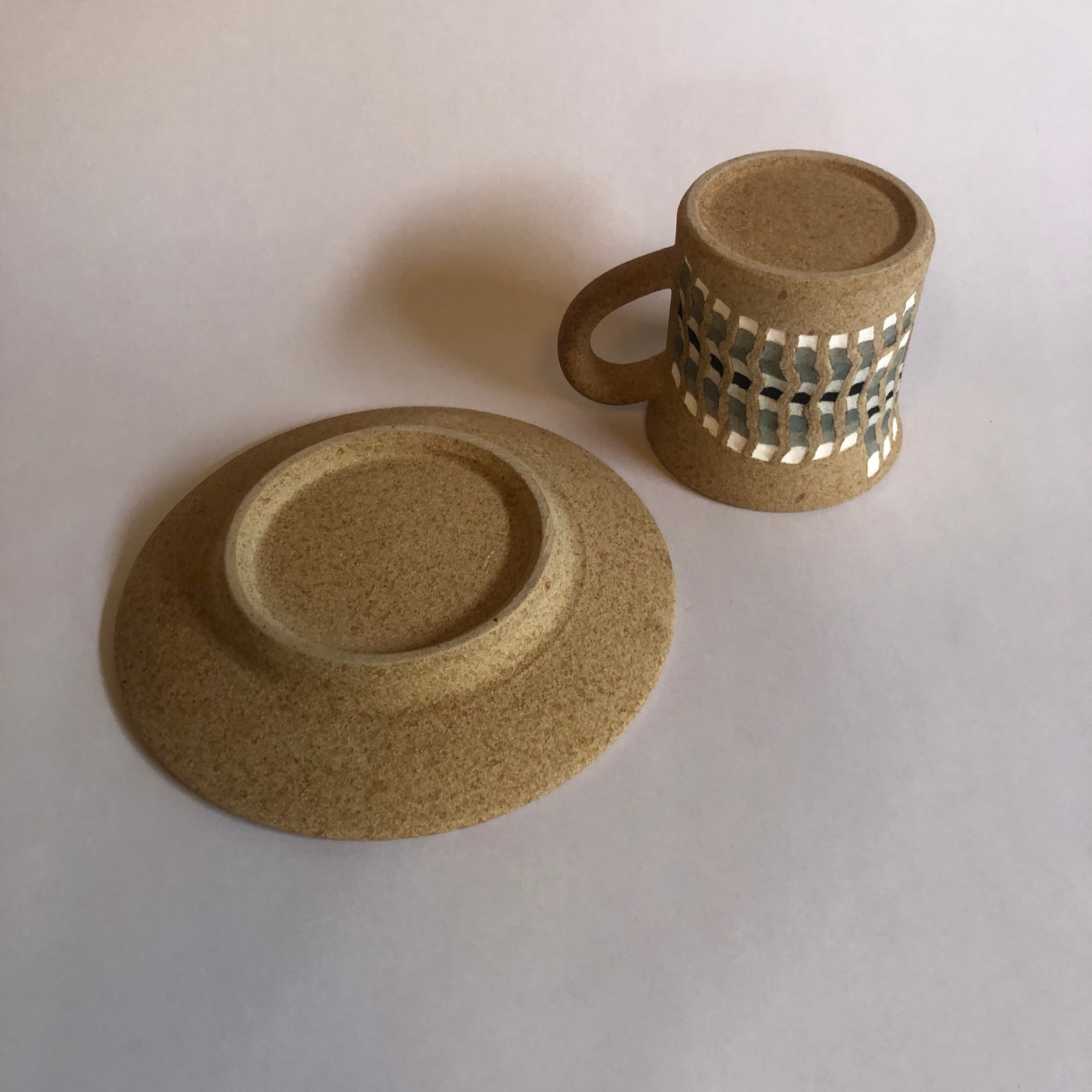このティーカップは、福岡県の伝統工芸品である上野焼の技術をもとに、窯元世良彰彦が作陶活動の初期にプロデュースしまデザイン、「風紋」を活用した逸品です。砂漠に生じる風紋を、抽象的にデザインし、オリジナルの顔料で彩られます。