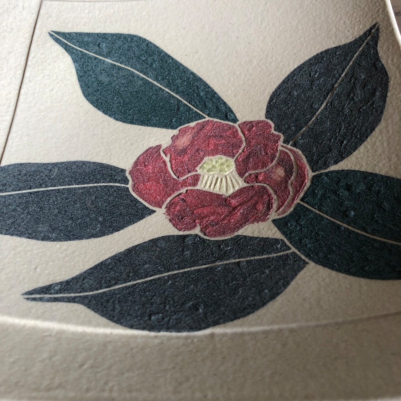(技 法)マスキング技法によって彩られた「椿紋」シリーズの一つ 手捻りによるハンドメイドの一点もの