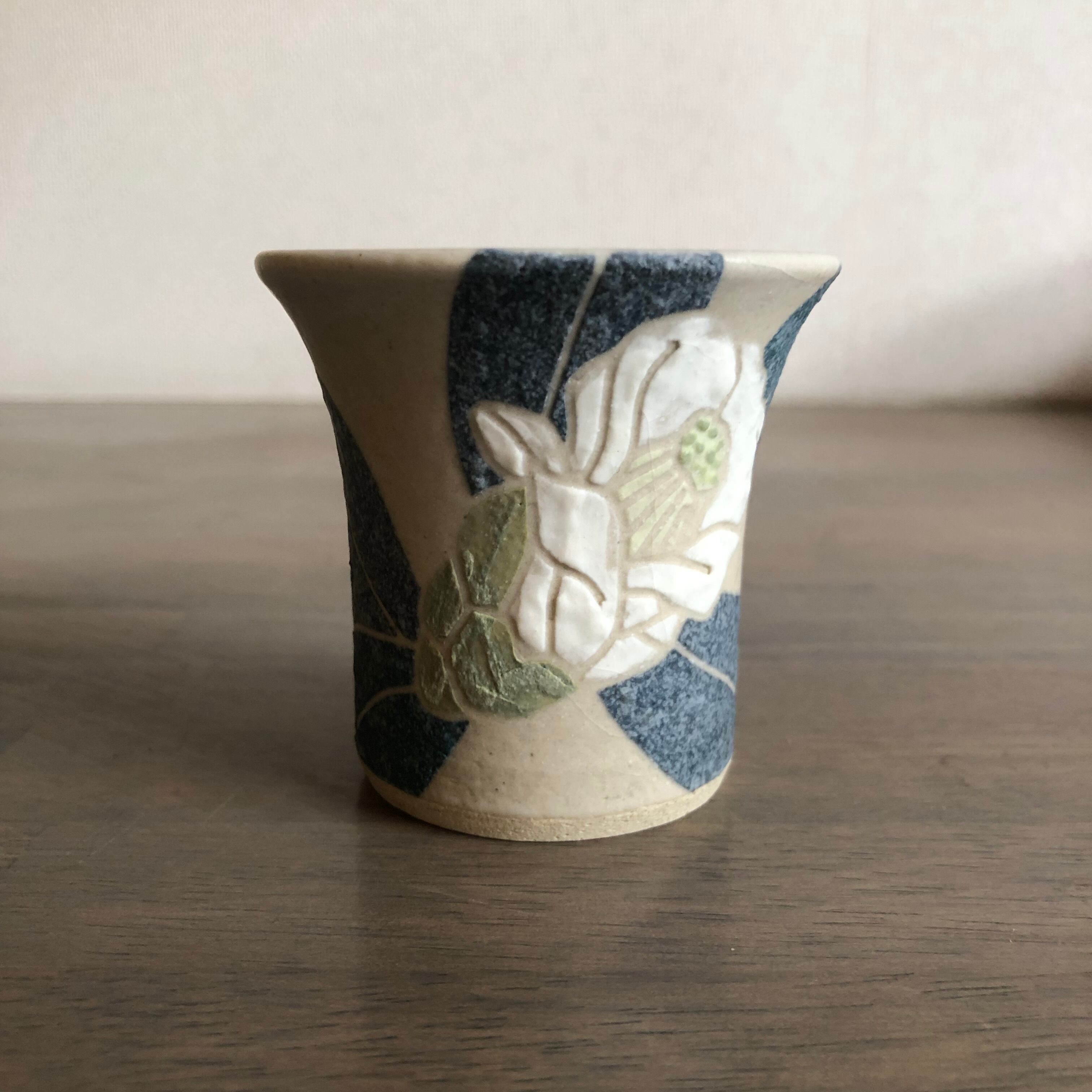 このぐい呑は、 口縁部に向かってやや広がりを帯びた形で、陶芸の里上野に受け継がれし伝統の技術に仕上げられたオリジナル。
